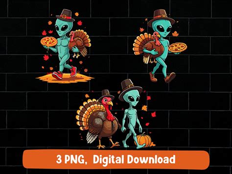 Thanksgiving Alien PNG: Turkey Pizza Pilgrim Design (Digital Download)