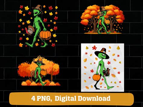 Thanksgiving Alien PNG Bundle: Fall Pilgrim Alien Clipart (Digital Download)