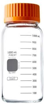 Corning Pyrex Round Media Storage Bottles, Wide-Mouth, Capacity 1000 Ml 10 Each Orange | Polypropylene/Glass