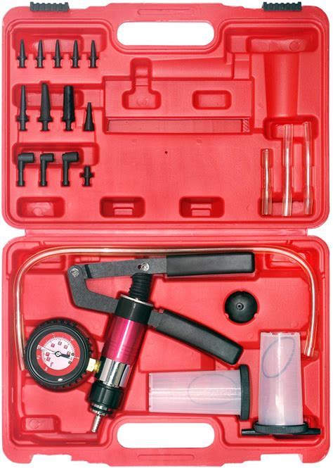 YSTOOL Brake And Clutch Fluid Hand Pump Vacuum Bleeder Tool Kit Brake Oil Change Power Steering Fluid Bleeding Set With Hand Pump Jar Adapters For