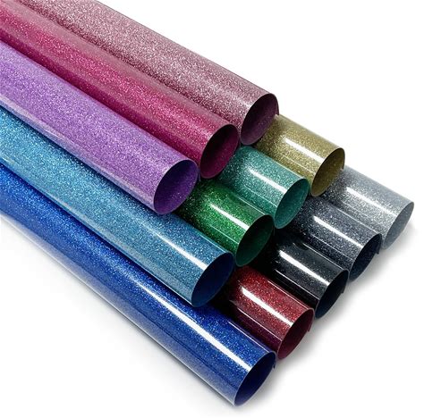 IRON-ON HTV Glitter Heat Transfer Vinyl Bundle 12" X 10" Sheets 16 Assorted Colors 16 Pack Iron On Vinyl For Shirts DIY Desing