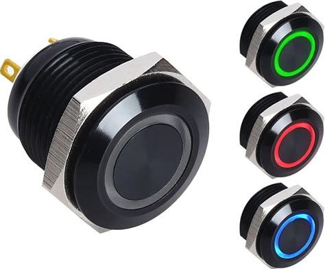 16mm 19mm 22mm RGB Ring Illuminated Black Momentary Push Button Switch Water Proof 12V Can Use Arduino Model