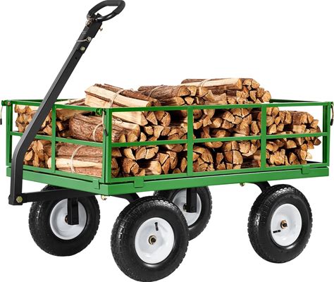 Heavy-Duty Steel Garden Cart With 1400 Lbs Capacity, Removable Sides, Dual Handle, And 16 Inch Tires