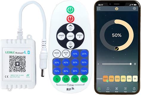 Smart Bluetooth LED Controller - App Controlled Dimmer Switch With Music Sync, Timer, 23-Key Remote - DC 12-24V For Single Color LED Strip, Cabinet,