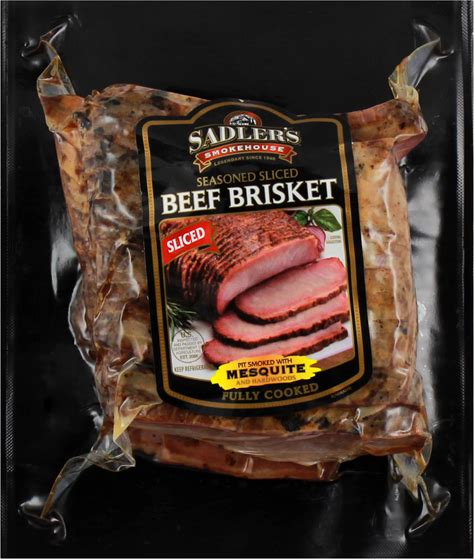 SADLER's SMOKEHOUSE Seasoned Sliced Mesquite Smoked Beef Brisket, Average 1.5 - 2 Lb Plastic Package
